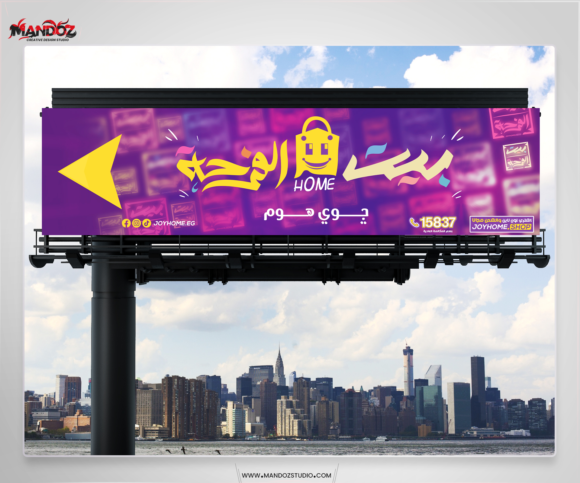 هذه الهوية لا تُعرّف المكان فقط، بل تخلق قصة بصرية ممتدة تُرافق العميل في كل نقطة تفاعل مع جوي هوم.
